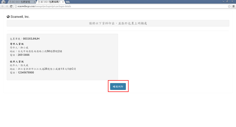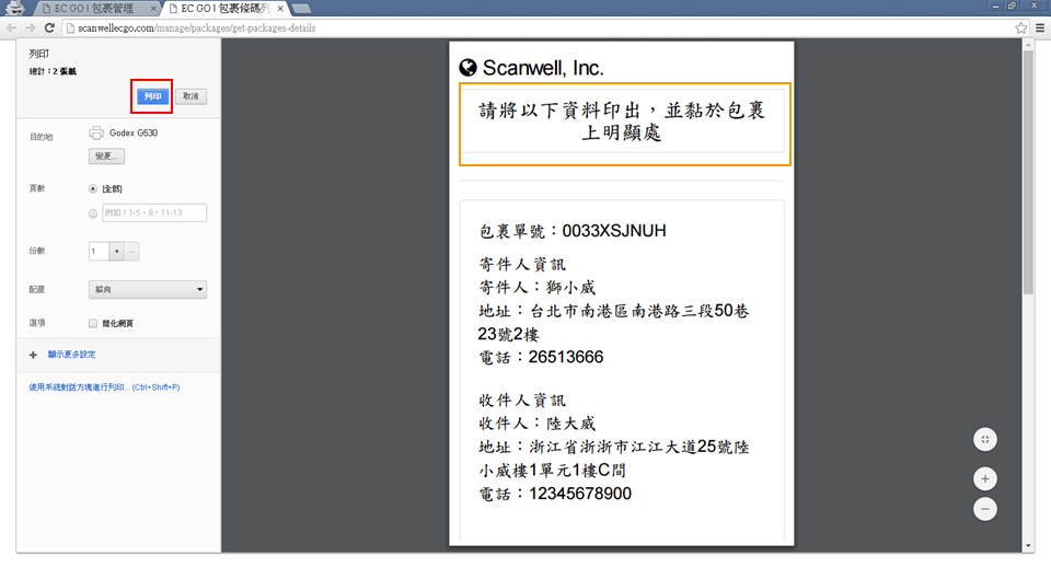 06.按列印,並把列印出的資料黏貼在包裹上。
